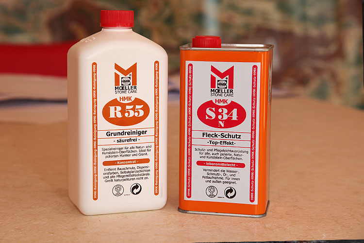 und Konservierungsmittel an. Steinversiegelung kann zum Versiegeln aller saugfähigen Natur- und Kunststeinflächen (z.B. Schiefer)