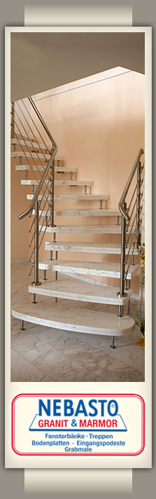 Wandverkleidung in Eingangsbereichen, Fliesen und Bodenplatten, Treppen, Mosaikgesteine, Grabmal, Bildhauerstein